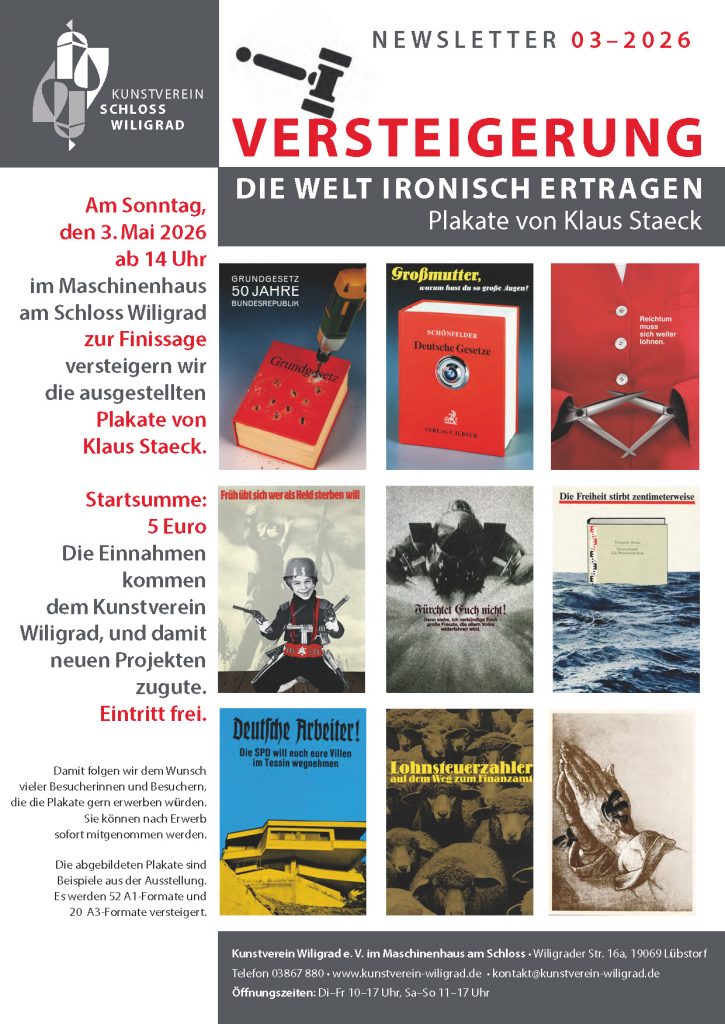 Erhalten Sie alle wichtigen Neuigkeiten zu den Ausstellungen und dem Veranstaltungsprogramm des Kunstverein Wiligrad e.V.