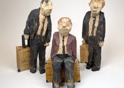 Der Hamburger Künstler Georg Schulz (*1952 †2025) kam über die Arbeit als Möbeltischler zu seiner Leidenschaft, Charaktere in Holz zu hauen. Die Beobachtungen, die sich später in seinen Skulpturen wiederfinden, sammelte er im Alltag. Jede einzelne Skulptur verblüfft durch die einfache, aber äußerst treffende Darstellung menschlicher Eigenheiten. Obgleich Georg Schulz eher grob arbeitet, scheinen diese skurrilen Figuren in allem Nuancenreichtum zu leben. Und ganz ähnlich, wie es gute Karikatur zu leisten vermag, halten sie dem Betrachter liebevoll einen Spiegel seiner Schwächen vor.
